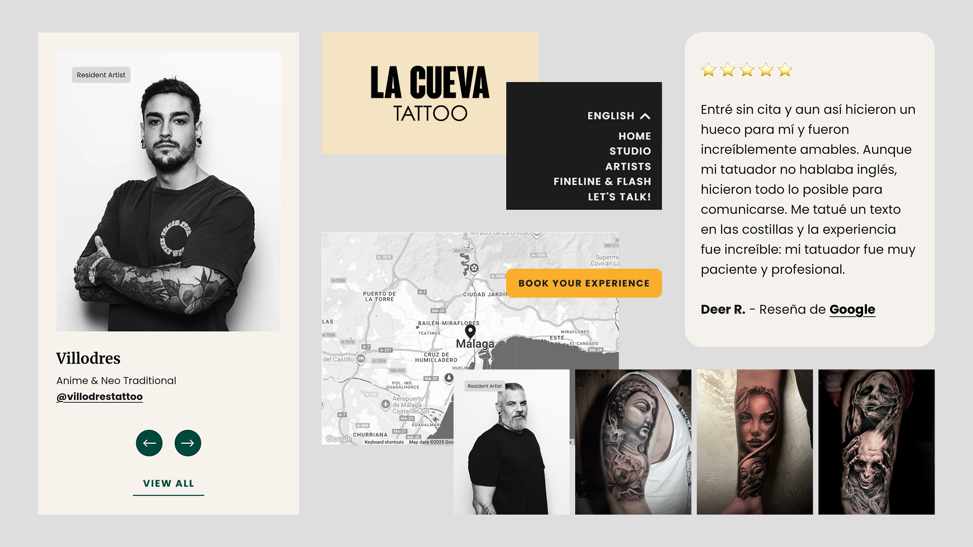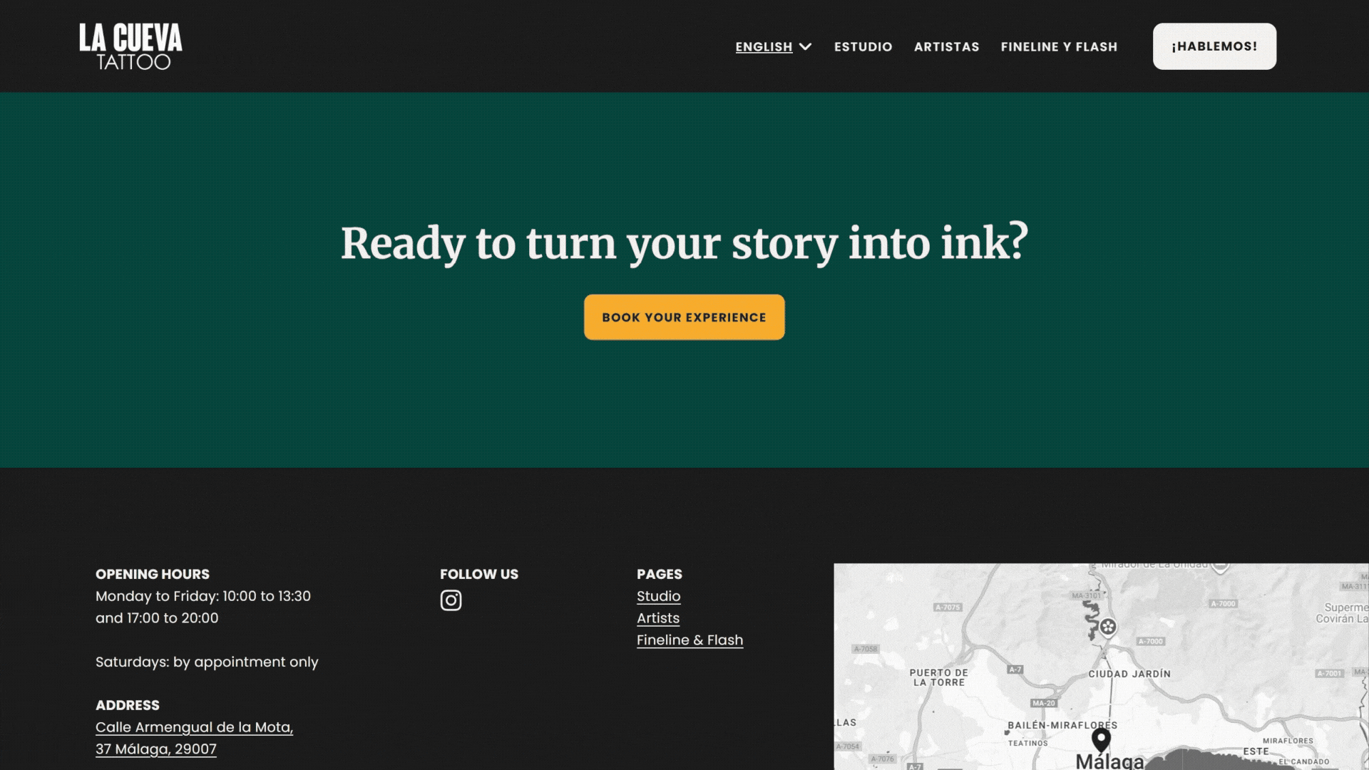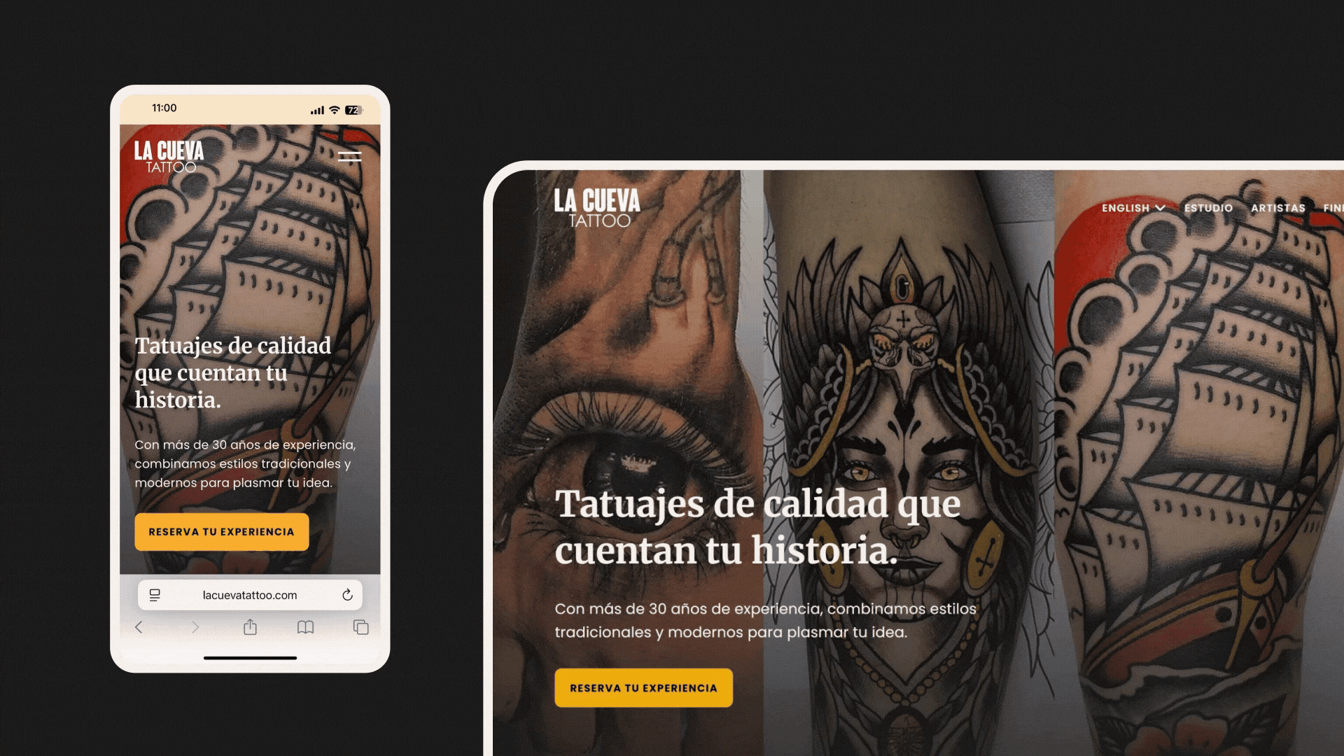 The redesigned website strengthened the studio’s international presence, contributed to a 12% increase in global engagement, and saved 300€ annually in translation and maintenance costs. La Cueva Tattoo now has a digital presence that matches its craft, warm, skilled and ready to welcome a wider audience.